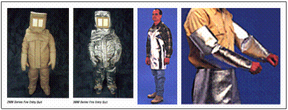 頭盔、手套、腳套、袖套、圍裙、連袖圍裙、鞋、布簾、大衣及進入火場用防火衣等多種規格品或訂製品的護具。其中在材質上的選擇依工作場合需求,配合不同的防火纖維布,如隔熱、防火、耐熱等多項要求及其條件,製作成最適合您的防火護具